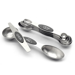Juego de cucharas medidoras magnéticas de acero inoxidable de doble cara de 7 piezas con nivelador para cocinar y hornear