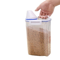 Caja de almacenamiento de cereales de plástico de 2L, dispensador de alimentos de grano para cocina, respetuoso con el medio ambiente, organizadores de nevera, taza de medición
